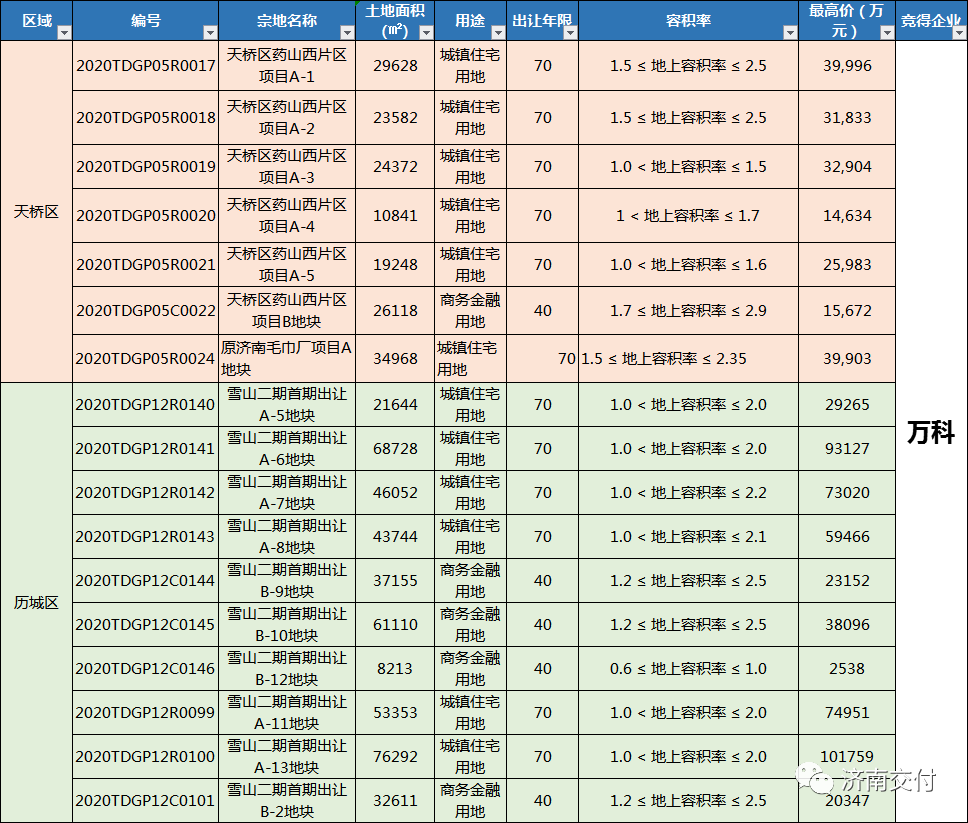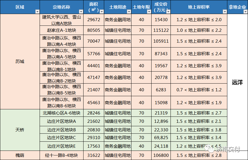2020年济南土地数据出炉!历城区成交高居榜首万科、远洋成最大赢家