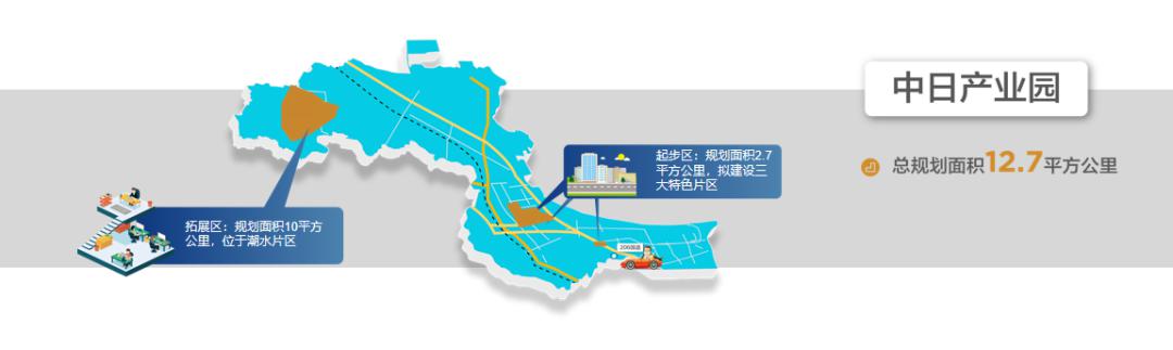 中日产业园规划面积12.7平方公里,包括起步区2.7平方公里、拓展区10平方公里。起步区将规划三大特色功能区: