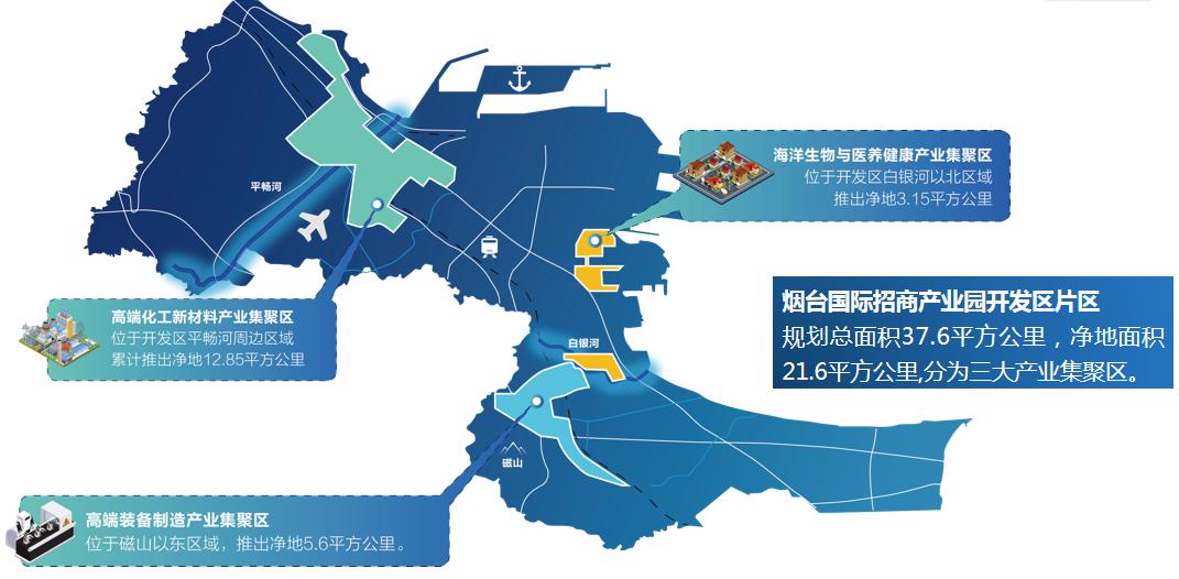 其中高端化工新材料产业集聚区,依托空港、海港和烟台化学工业园,加快推进万华化学百万吨乙烯、美瑞新材料等项目,瞄准世界500强及万华化学上下游配套化工企业,打造全球产能最大、品种最全、竞争力最强的高性能树脂等精细化工产品生产基地。海洋生物与医养健康产业集聚区,依托生物医药园、环东岛科教走廊,引进一批高水平、国际化的生物医药研发及产业化项目,打造世界级生物药谷;加快招引海洋生物提取、精深加工等知名企业,打造全国具有重要影响力的海洋经济创新区。高端装备制造产业集聚区,依托环磁山国际科研走廊,重点打造整车整机及高端装备制造特色功能区。